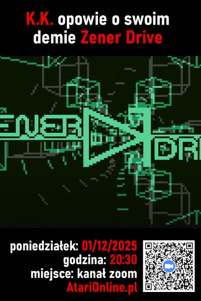 Demo "Zener Drive" i K.K. z 2025-11-30 17:39 (37) Demo "Unseen" i Bober z 2025-11-30 10:05 (15) Spowiedź autorów #22: KTZ i Hospes z 2025-11-28 14:41 (0) AI napisało grę Atari z 2025-11-26 17:14 (110) Spotkanie z Hospesem i Rogulem z 2025-11-25 18:01 (10) Zimowa edycja Silly Venture 2k25 już trwa! z 2025-11-21 18:26 (47) Nadchodzi KWAS #38 - Wrocław (Mokry Dwór) z 2025-11-19 15:59 (7) Strona Jer-a zachowana! z 2025-11-16 12:55 (11) ATASCII Compo 2025 – głosowanie z 2025-11-09 21:50 (23) Sceny z demosceny #2: analiza dema "Unleashed" z 2025-11-07 15:06 (15) Joypad CX41 z 2025-11-04 15:15 (11) Drewniana saga: magnetofon z 2025-10-28 15:40 (42) Jest nowy numer "Grela"! z 2025-10-24 12:33 (14) Historie klubu Plus, L.K. Avalon i inne z 2025-10-23 15:49 (2) Jak rozgryzłem I.S. Plate? z 2025-10-21 22:23 (19) Analiza dema "Unleashed" z 2025-10-20 17:41 (15) Na ratunek Compaq-owi Portable z 2025-10-17 17:09 (13) Muzyka z samplami MPT z 2025-10-14 17:42 (4) 5. edycja ATASCII Compo z 2025-10-12 12:24 (11)