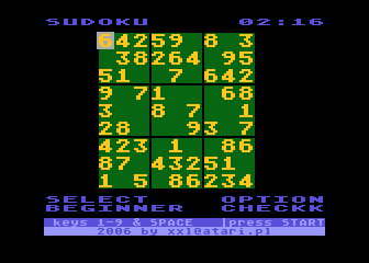 Sudoku - piersza gra Krzysztofa i pierwsza gra na Atari w 2006 roku