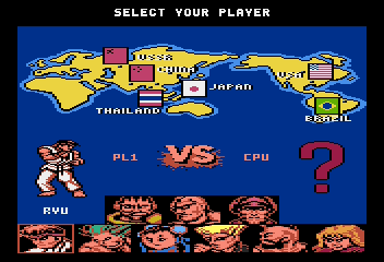 A teraz trochę szczegółów graficznych, gra korzysta z trybu graficznego 160x200 poza górnym menu i dolnym wierszem gdzie mamy tryb tekstowy HIRES. W trybie graficznym prościej jest rysować sprite-y, ale tracimy 5-ty kolor. Aczkolwiek tutaj ten 5-ty kolor jest wykorzystywany na czarne ramki po bokach ekranu. Wszystkie pociski PMG są ustawione w 5-tym kolorze (BLACK) i są one na marginesach aby uzyskać te czarne ramki. Grafika sprite-ów w bankach pamięci kartridża jest przechowywana w takim samym formacie jak ma ekran czyli jeżeli sprite ma 32 ,48 czy 64 piksele szerokości to i tak nie ma to znaczenia bo jedna linia sprite-a to 160 pikseli (40 bajtów) w pamięci. Co nam to daje? Możliwość bardzo szybkiego rysowania na ekranie bo dane są tak samo ułożone jak pamięć ekranu więc ich przepisanie na ekran jest znacznie prostsze. Ale wadą są duże wymagania odnośnie pamięci. Dodatkowo każda klatka sprite-a to tak naprawdę dwie klatki, bo żeby rysować na tle to musimy to robić sekwencją AND/ORA. A jeszcze potrzebny jest 2-gi zestaw klatek przesunięty o 2 piksele, żeby uzyskać w miarę płynną animację w poziomie (wsp. X). Czyli z 1 klatki robią się nam właściwie 4 klatki co mocno „zżera pamięć”. Dodając do tego, że np. sprite-y potrafią mieć nawet 64 piksele szerokości i 72 pikseli wysokości (np. SAGAT) to wymagania odnośnie pamięci mocno rosną. Dlatego ta gra wymaga do działania kartridża z aż 4MB pamięci ale za to pójdzie na standardowym ATARI XE/XL z 64KB. Jeżeli chodzi o plansze gry to kolory zostały dołożone dzięki DLI oraz PMG oraz zastosowany został trik, że gracze nie mogą tam doskoczyć. Dzięki czemu nie mamy tam ograniczeń kolorystycznych.